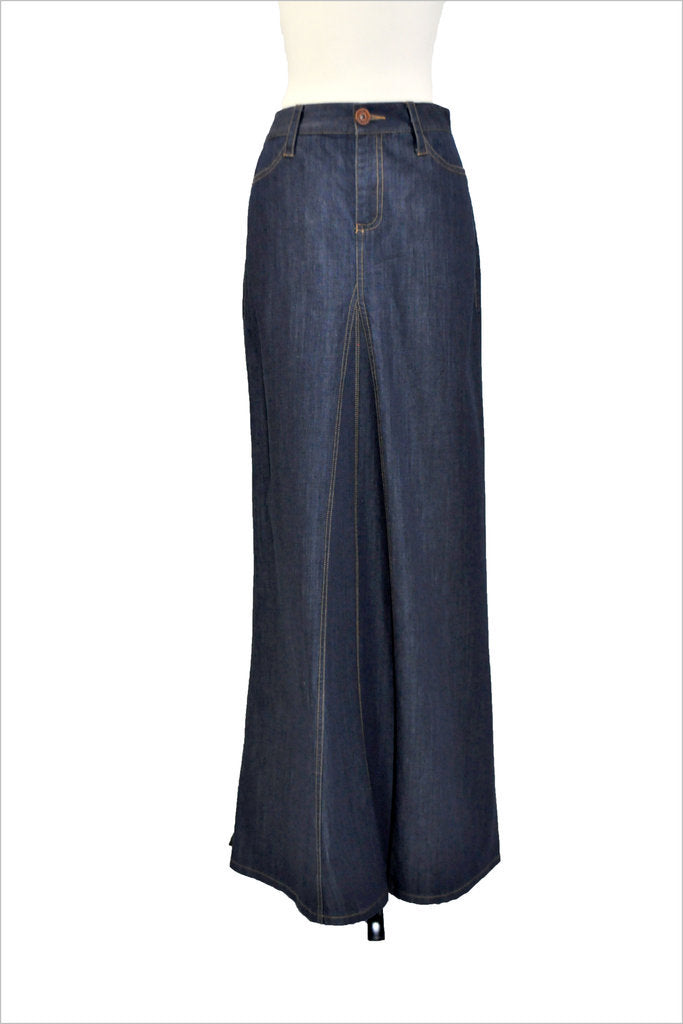 Soft lightweight denim with extra pleats in the front and back give this denim skirt a charming flow. This desirable piece is essential in every woman’s closet.